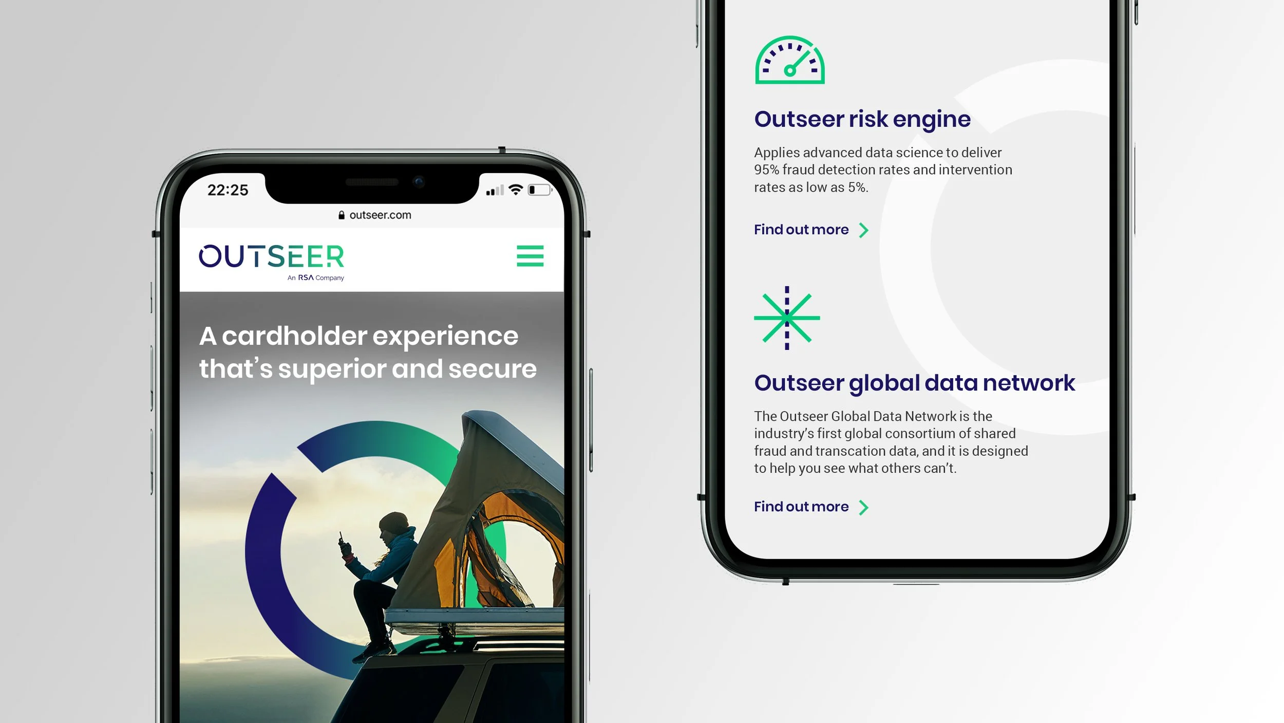 The ‘O’ from the Outseer logo was used as a graphical device which we could overlay onto photography and type. Alongside this we created a bold colour palette and range of dynamic shapes which brought the brand to life.
